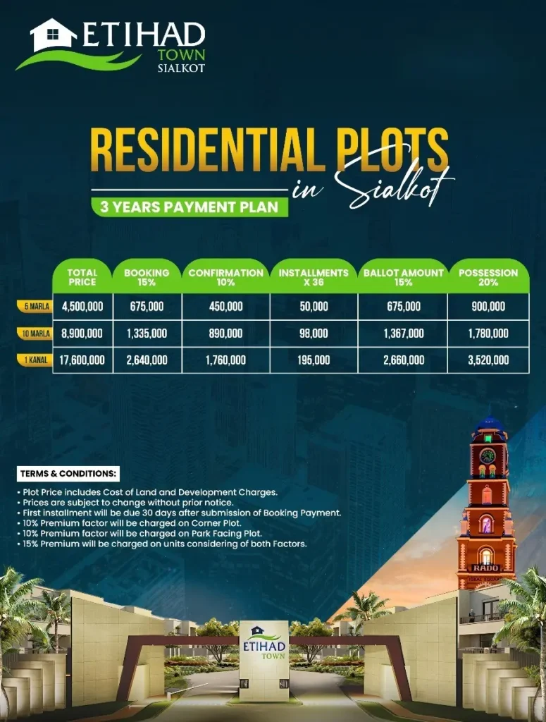 Whether you’re looking to build your ideal home or seeking a reliable long-term investment, Etihad Town Sialkot offers everything you need.